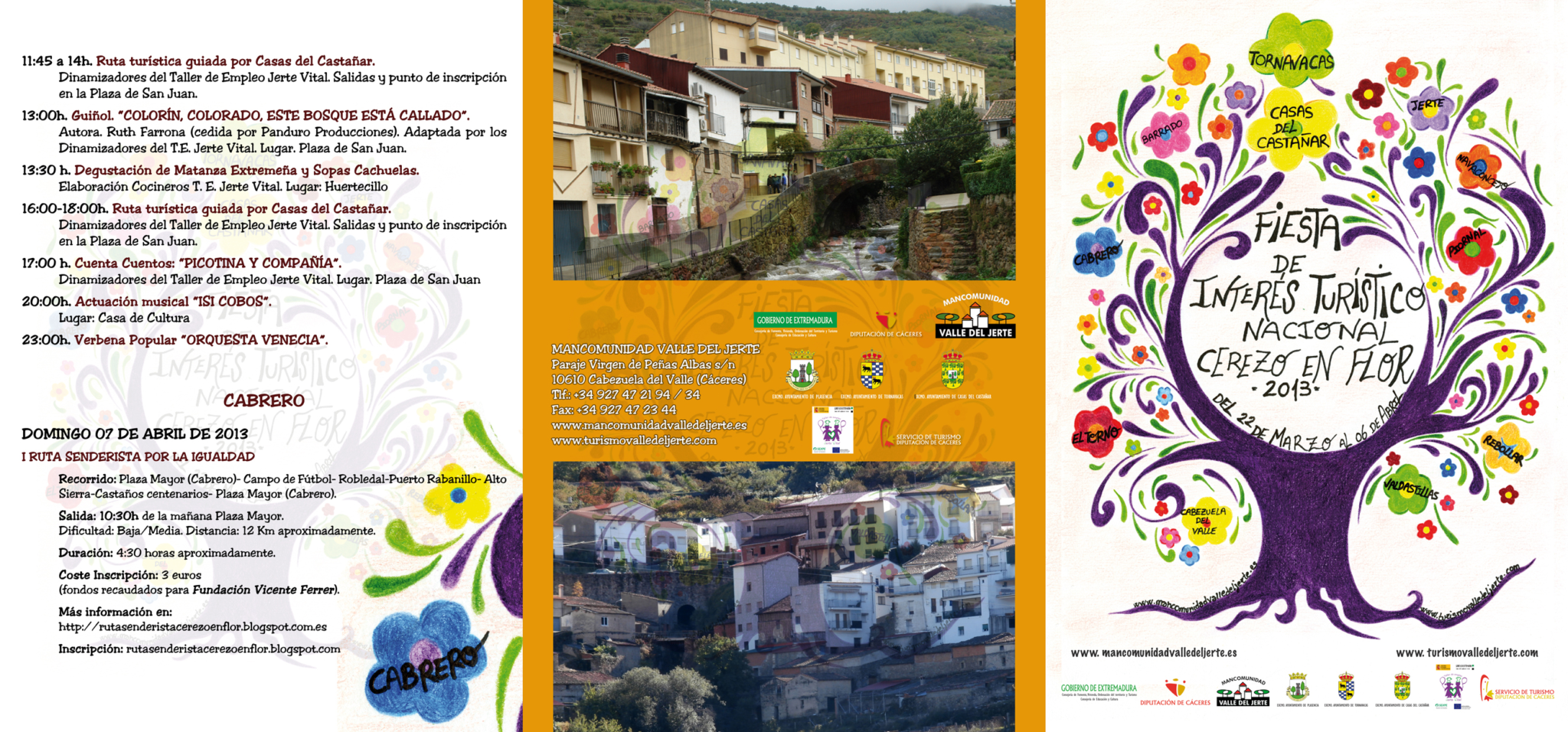 Como ya os hemos comentando en este blog y a través de las redes sociales, Tornavacas y Casas del Castañar acogerán los actos de inauguración y clausura ( 6 de abril) de estas fiestas, que, en realidad, concluirán el 7 de abril con la I Ruta Senderista por la Igualdad. La cita es en Cabrero a las 10.30.