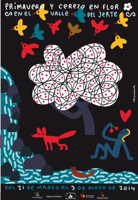 Como os adelantamos en otras entradas, este año 2014, el diseño del cartel para anunciar el inicio de la “Primavera y Cerezo en Flor en el Valle del Jerte” lleva la firma de Kukuxumusu. ¡Y ya está listo! Lo podéis descargar en esta entrada, junto con el completo programa de actividades con el que el Valle del Jerte recibirá este año a sus visitantes con motivo de la Fiesta del Cerezo en Flor y los eventos programados en los días previos para conmemorar también la llegada de la primavera.
