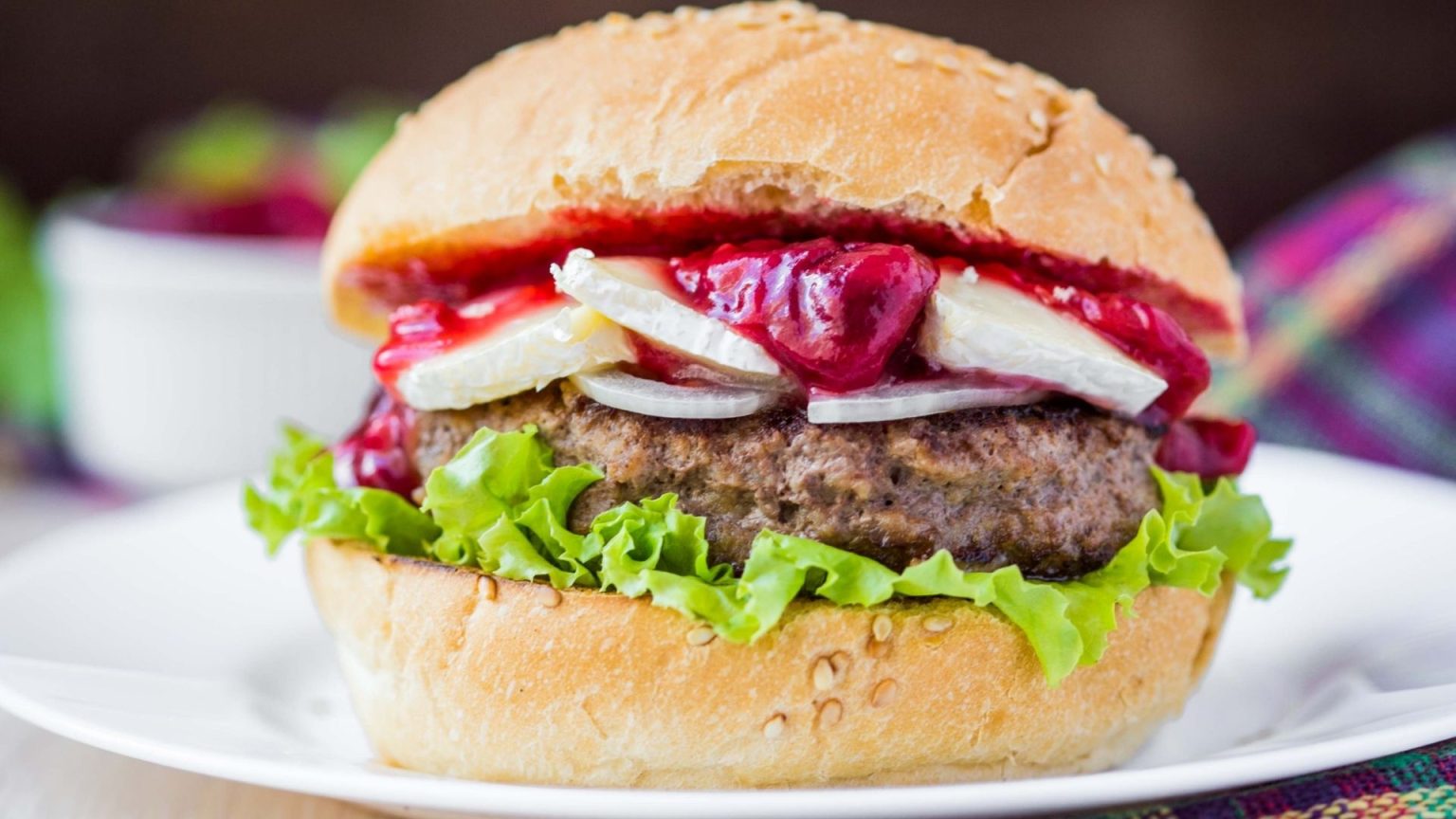 Hamburguesa de cerezas y salsa picante de cerezas y naranja