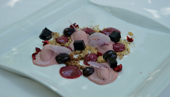 Pero la versatilidad de la picota en la cocina quedó clara con su postre «Picota sobre picota», en el que la cereza aparece en cinco formas distintas: helado de picota, crema inglesa de picota, picotas confitadas en licor de picota, caramelo de picota y gel de picota.